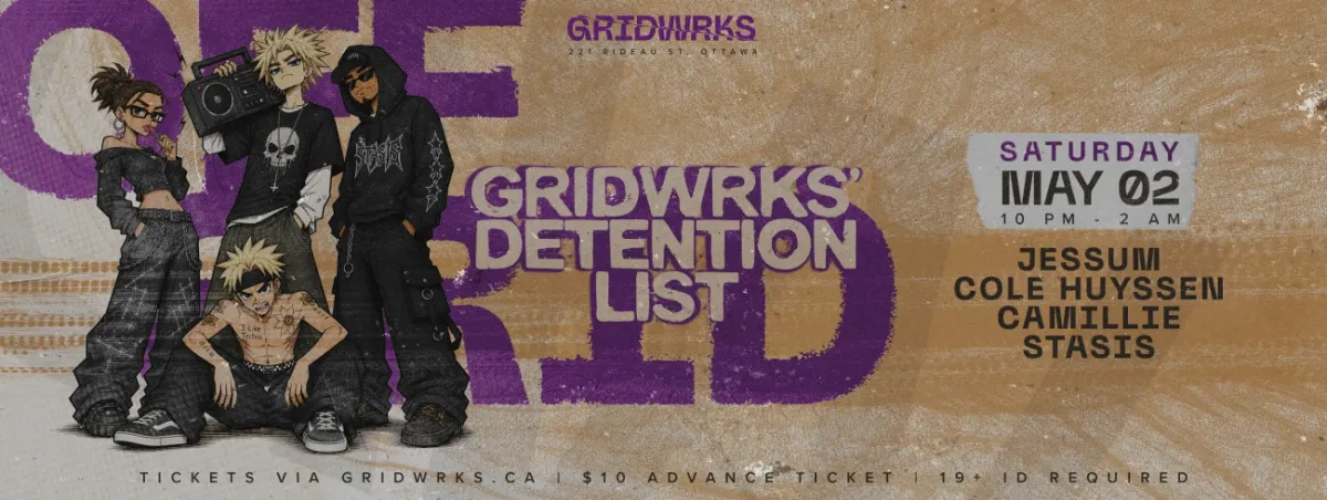 OFF GRID features a verity of underground electronic niche sounds. A deeper cut into the underground, away from the noise, into the raw and industrial. Every Week will feature guest DJs that will serve as the musical hosts, taking the audience on their desired journey throughout the course of the event.This Saturday features sets from JESSUM, COLE HUYSSEN, CAMILLIE & STASIS10pm-2amCity Gridwrks221 Rideau St19+