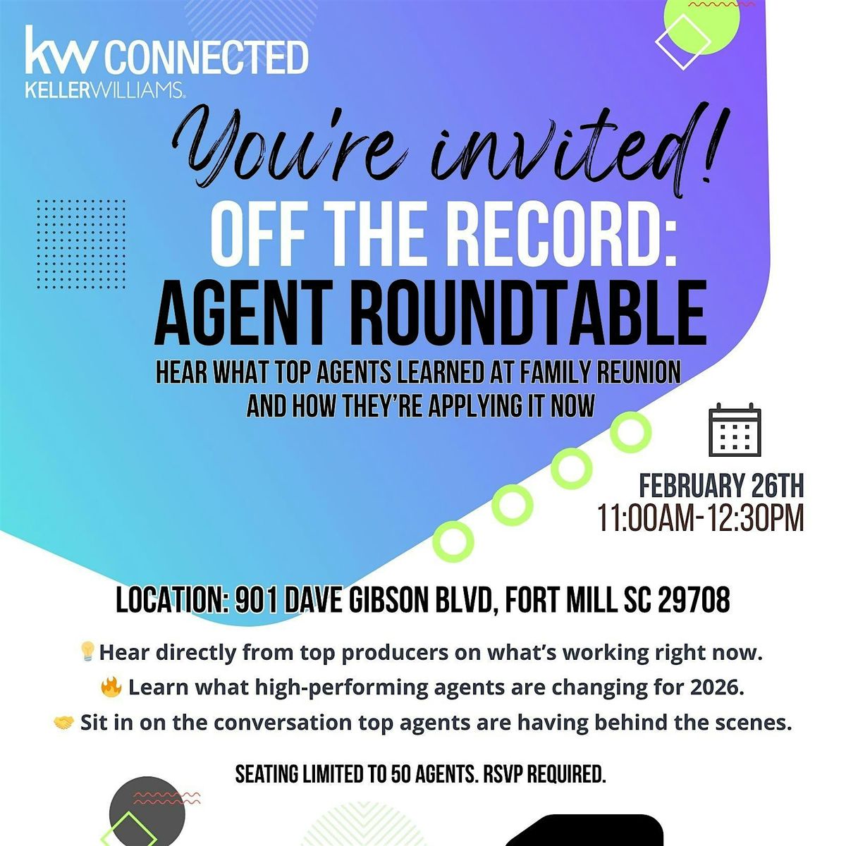 Join a select group of agents for a candid, off-the-record discussion on real market shifts, proven strategies, and business moves coming out of Family Reunion.
