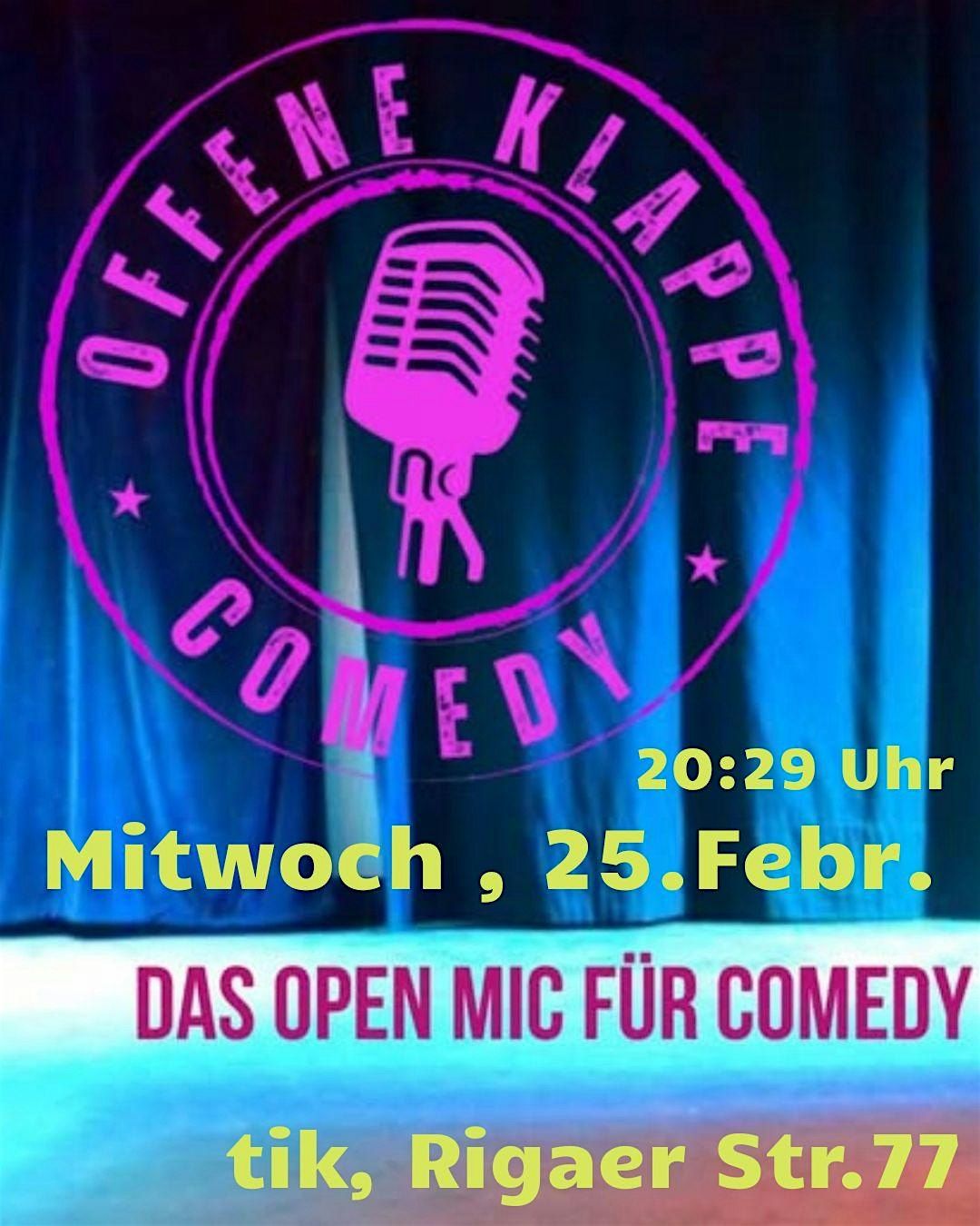 Open Mic für Comedy und sonstigen Humor, Schreiende Komik und mutige Versuche! Neben Stand up kann jeder Quatsch auf die Bühne kommen, der irgendwie witzig ist oder noch wird. Gute Stimmung ist garantiert, Lachen sehr wahrscheinlich.Für Comedians : Dauer je Spot ca. 7 min. Spontane Spots sind nur begrenzt möglich. Meldet euch zwecks Anmeldung gern mindestens einige Tage vor der Veranstaltung bei [email protected] tik ist ab ca. 20 Uhr geöffnet.
