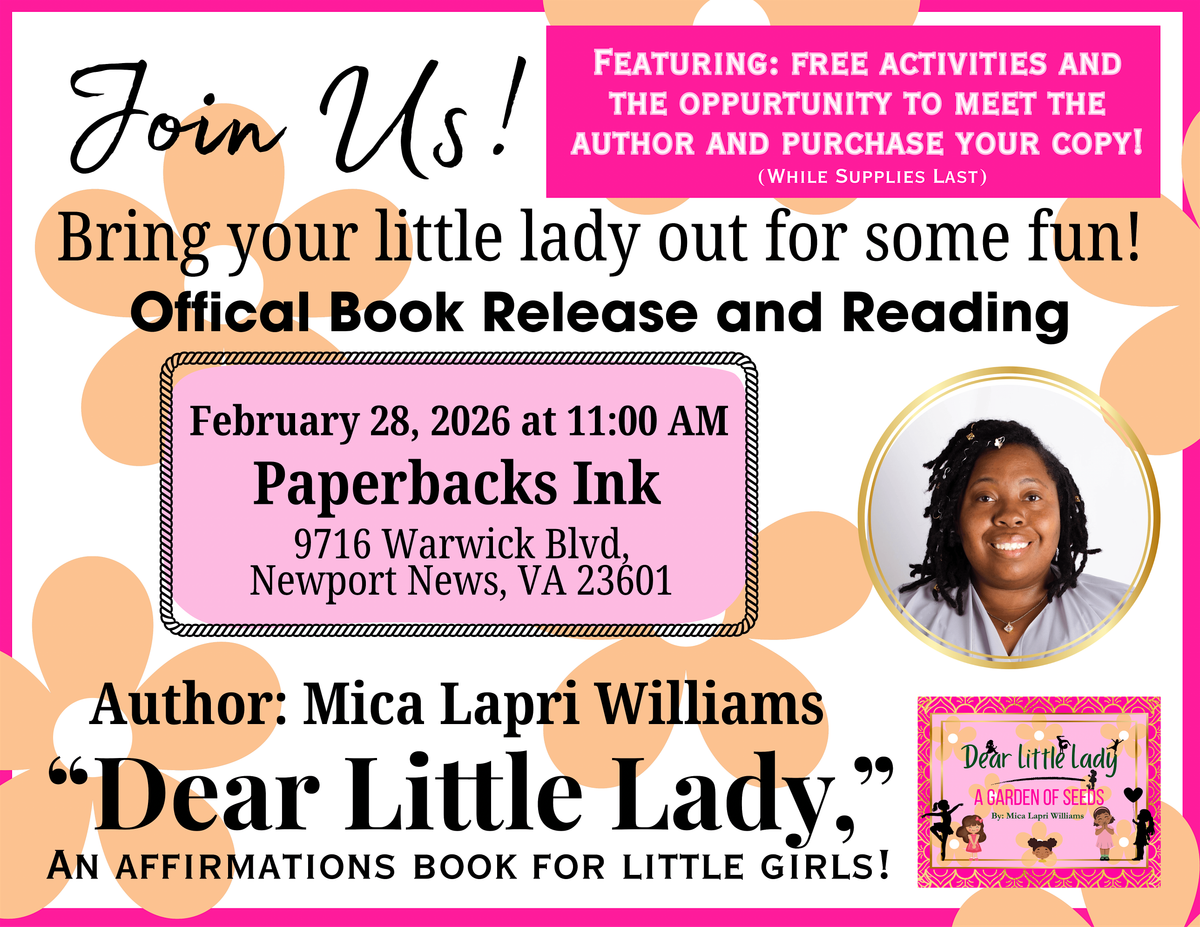 Join us in person for the official launch of “Dear Little Lady: A Garden of Seeds”! Celebrate this special moment with an engaging reading, meet the author, and connect with fellow book lovers. Don't miss out on this cozy and inspiring event!