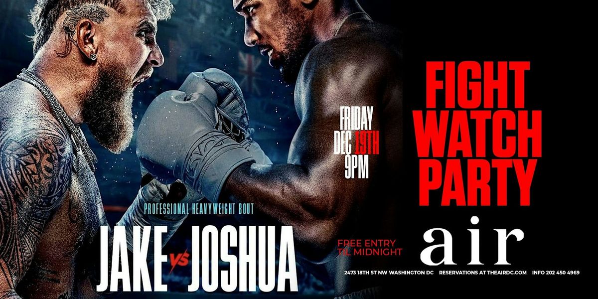 Welcome to the Official Jake Paul vs Anthony Joshua Fight Night Watch Party at Air Restaurant & Lounge! Get ready for an epic night of boxing action on December 19, 2025 at 10:00 PM . Join us for a thrilling evening filled with big screens, delicious food, and great company. Don't miss out on the excitement - mark your calendars and come cheer on your favorite fighter with us!