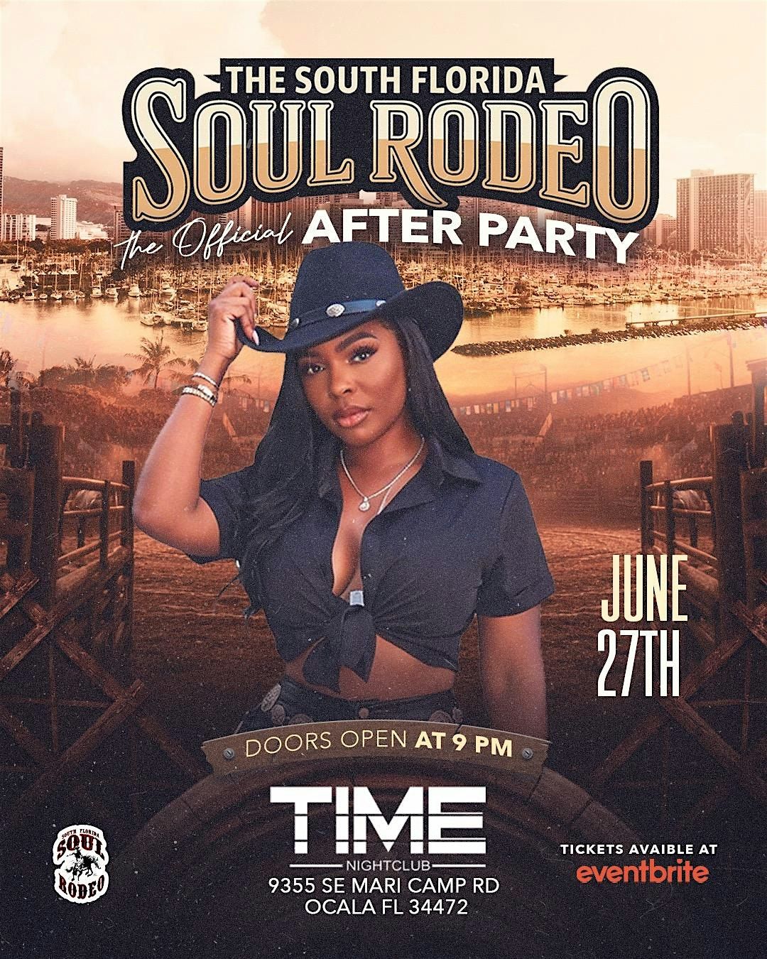 Its the Ocala South Florida Soul Rodeo Official Afterparty all going down at Time Nightclub in Ocala. Live DJs, Vip section, Tables and great Drinks. To cap off your South Florida Soul Rodeo Wknd.
