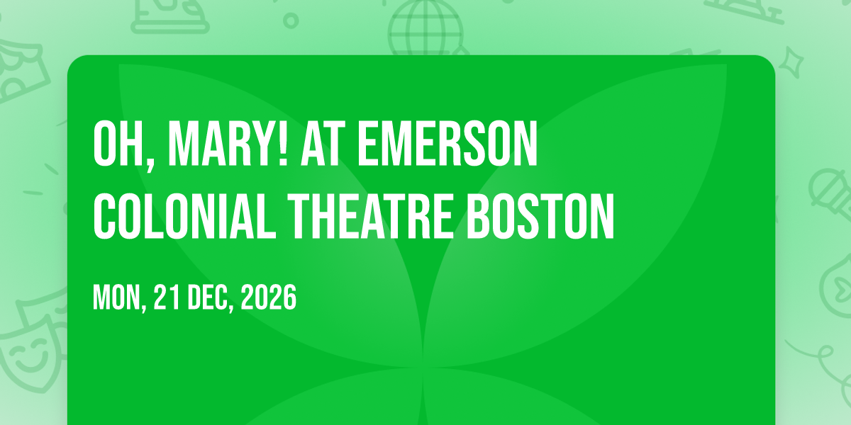π Welcome to Oh, Mary! at Emerson Colonial Theatre Boston, where dreams come alive and possibilities are endless! ποΈ Join us at Emerson Colonial Theatre Boston in the heart of Boston, MA for an event that defies expectations. π On December 22nd, 2026 at 07:30 PM, be part of something truly extraordinary as we bring together innovation, entertainment, and pure magic. β¨ Every aspect has been carefully designed to ensure an unforgettable experience for all our guests. Whether you're seeking adventure, inspiration, or simply a break from the ordinary, this event promises to deliver beyond your wildest dreams. π Prepare for a journey into the extraordinary!