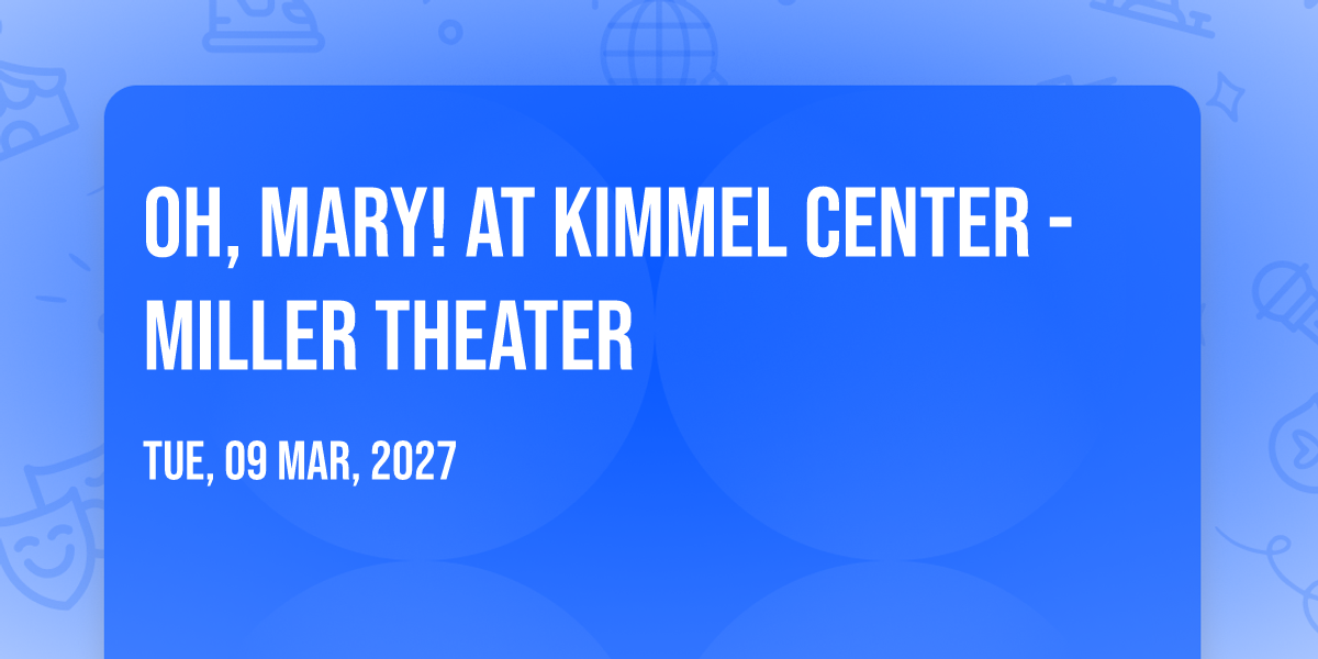 π Step into a world of wonder at Oh, Mary! at Kimmel Center - Miller Theater, where extraordinary moments await! ποΈ Located at Kimmel Center - Miller Theater in dynamic Philadelphia, PA, this event will become the talk of the town. π Join us on March 14th, 2027 at 01:00 PM for a celebration that defies the ordinary. β¨ This curated experience brings together the best of entertainment, culture, and community spirit. Every detail has been thoughtfully planned to ensure an unforgettable experience for all our guests. π― Take advantage of this opportunity to be part of something special. π Early registration is recommended as space is limited!