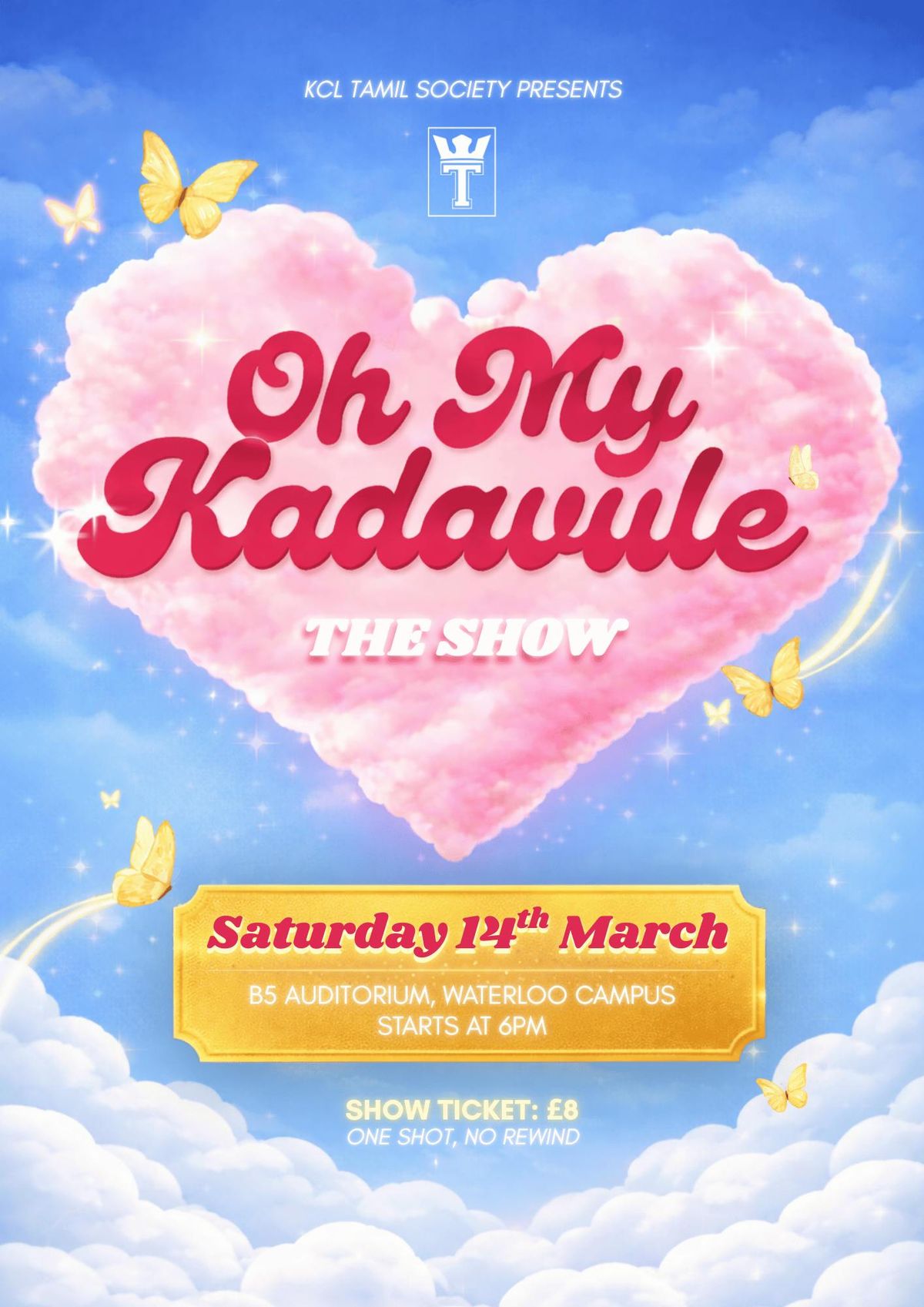 KCL Tamil Society proudly presents the FINALE of our brand new Oh My Kadavule 🦋💗 Trilogy Series…✨ OH MY KADAVULE: THE SHOW ✨