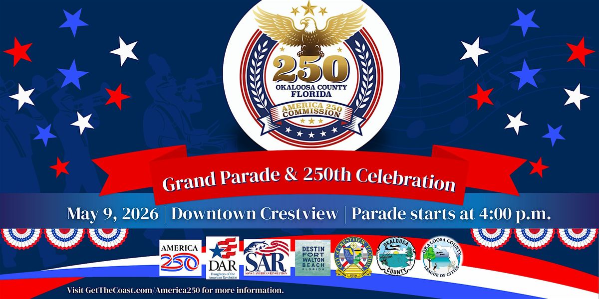 Get ready, Okaloosa County! The America 250th Grand Parade & Celebration is set to be one of the largest and most patriotic events in our country’s history as we honor 250 years of freedom, resilience, and the American spirit.