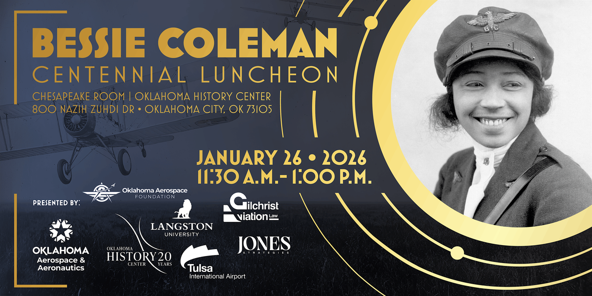 Powered by Gilchrist Aviation Law, Jones Strategies, and the Oklahoma Aerospace Foundation, join the Oklahoma Department of Aerospace and Aeronautics, the Oklahoma Historical Society, Langston University, and Senator Nikki Nice, Senate District 48, for an unforgettable in-person luncheon honoring the incredible Bessie Coleman during the State of Oklahoma's Bessie Coleman Centennial Week! This is your chance to meet Gigi Coleman-Broom, Bessie Coleman's great-niece, and hear inspiring stories about Bessie, the first African-American woman and the first Native American to earn a pilot's license. Delve into the life of this aviation pioneer and celebrate her groundbreaking achievements. It’s a wonderful opportunity to network, enjoy delicious food, and commemorate the legacy of a true trailblazer. Don’t let this chance pass you by—bring your friends along and let’s create lasting memories together!