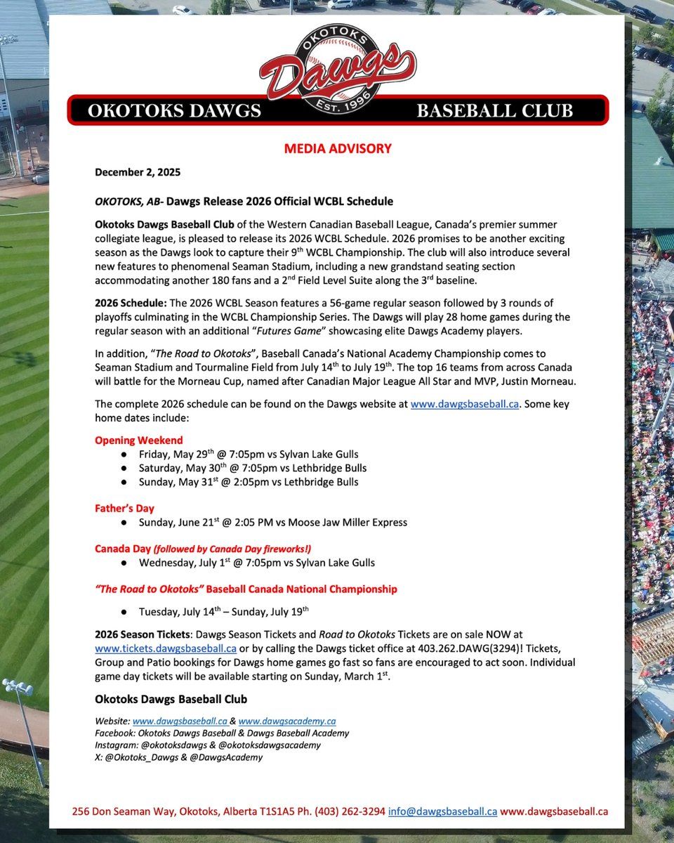 β¨ Enter a world of endless possibilities at Okotoks Dawgs vs. Sylvan Lake Gulls, where every moment tells a story! ποΈ The stunning Seaman Stadium in vibrant Okotoks, AB transforms into a realm of wonder on May 28th, 2026 at 05:00 PM. π They have crafted an experience that goes beyond the ordinary, combining elements of surprise, delight, and pure entertainment. Every detail has been thoughtfully considered to ensure your journey with us is nothing short of extraordinary. π― Join fellow adventure seekers and memory makers in this celebration of imagination and innovation. π Reserve your spot today and be part of something truly special!http://maps.seatics.com/SeamanStadium_Baseball_2025-01-21_2025-01-21_0128_01212025_075946_SVGC_tn.png