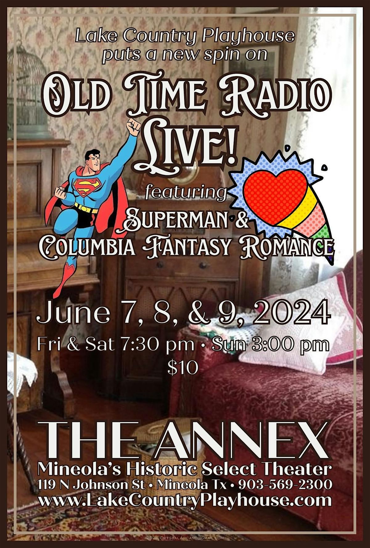 Here's something new! Our Lake Country Players take old school radio scripts and perform them live with our own special comedic spin! Come enjoy and laugh as we perform an old "Superman" radio script and a classic "Columbia Fantasy Romance" radio script live! Of course we are doing our own special take on them and it's sure to be a fun night of family friendly entertainment! June 7 & 8 at 7:30PM, June 9 at 3PM. Tickets just $10!