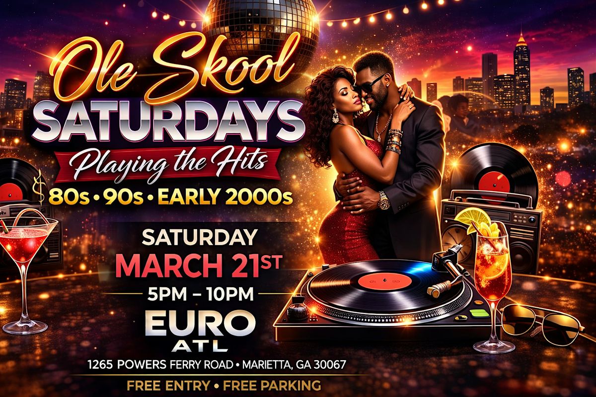 Ole Skool Saturdays at Euro ATL is Marietta’s ultimate grown and sexy early evening party featuring the best hits from the 80s, 90s, and early 2000s.