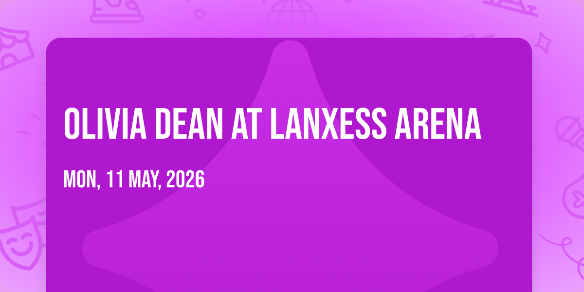 ✨ Enter a world of endless possibilities at Olivia Dean at Lanxess Arena, where every moment tells a story! 🏛️ The stunning Lanxess Arena in vibrant Cologne, NW transforms into a realm of wonder on May 11th, 2026 at 07:00 PM. 🌟 They have crafted an experience that goes beyond the ordinary, combining elements of surprise, delight, and pure entertainment. Every detail has been thoughtfully considered to ensure your journey with us is nothing short of extraordinary. 🎯 Join fellow adventure seekers and memory makers in this celebration of imagination and innovation. 🎊 Reserve your spot today and be part of something truly special!