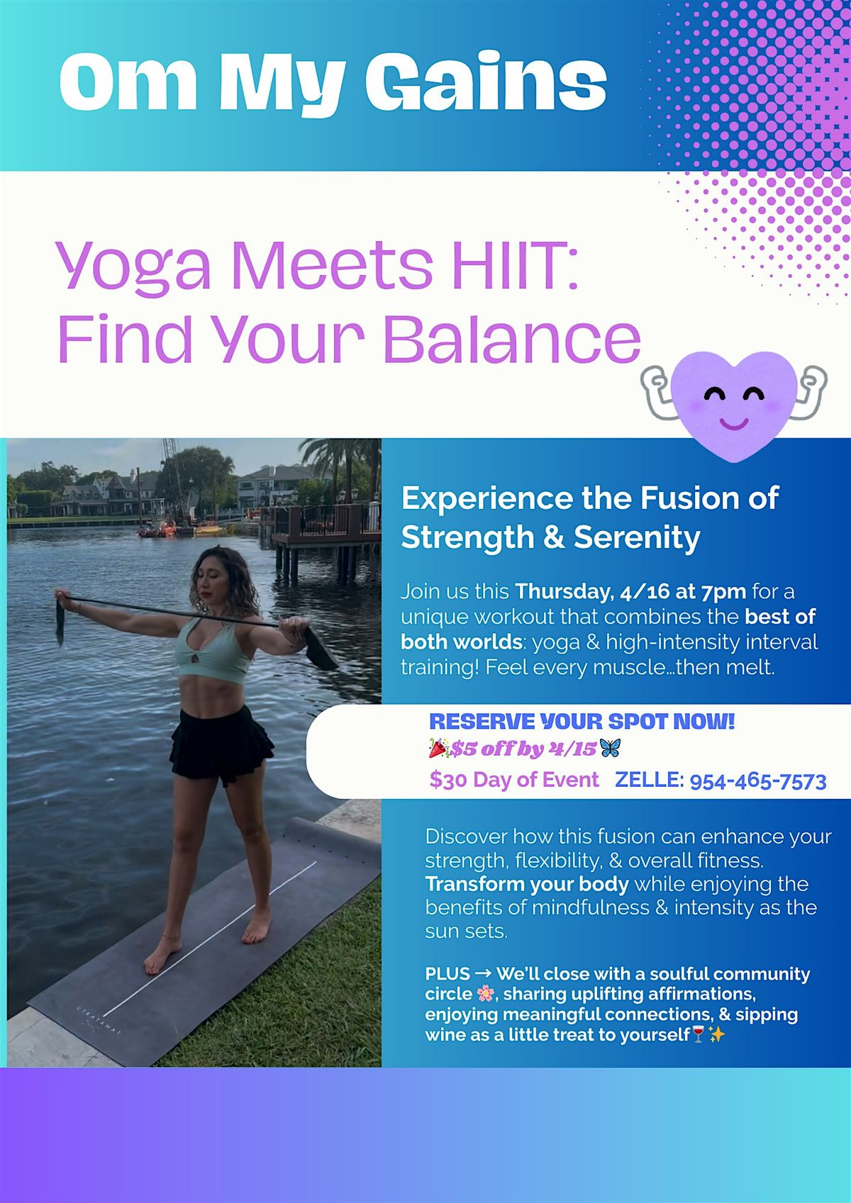 OM MY GAINS is a fun, high-vibe fusion class blending mindful yoga with strength training to help you build muscle, improve mobility, and feel empowered in your body.