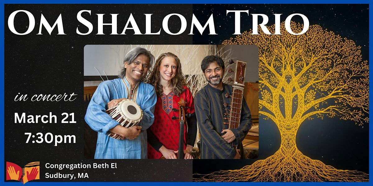 Experience the unique fusion of Indian Classical and Jewish music by the Om Shalom Trio, featuring award-winning artists Ranendra Das (tabla), Jessie Reagen (cello) and Abhik Mukherjee (sitar) from India and the US. Om Shalom explores the intersection of two, rich musical traditions in their performance of ancient Jewish melodies, Indian ragas, and new compositions. Saturday night’s concert will include Havdalah and will be followed by a dessert reception celebrating Indian and Jewish cultures, including babka and vegan chai.