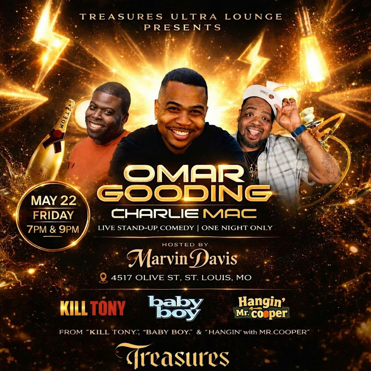 St. Louis — get ready for a grown & funny night of stand-up comedy as Omar Gooding and Charlie Mac take over Treasures Ultra Lounge for two explosive shows in one night.