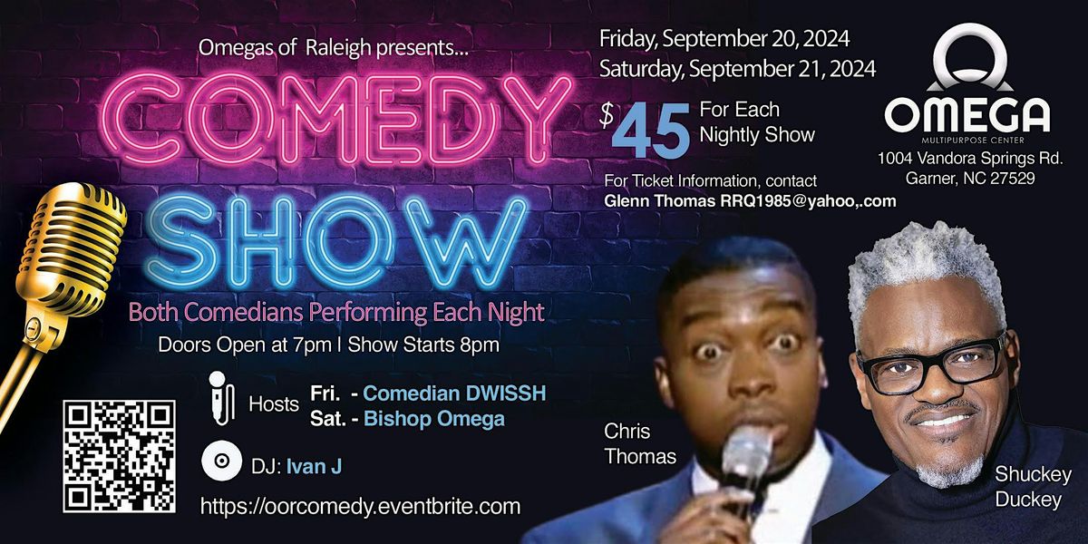 The Omegas of Raleigh invite you to enjoy our Standup Comedy Show! Friday September 20 or Saturday, September 21