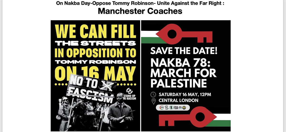 Join us: On Nakba Day : Oppose Tommy Robinson : Unite Against the Far Right
