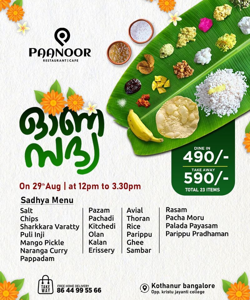 DELICIOUS ONAM SADHYA AT PAANOOR Celebrate this Onam with Paanoor ONAM MENU