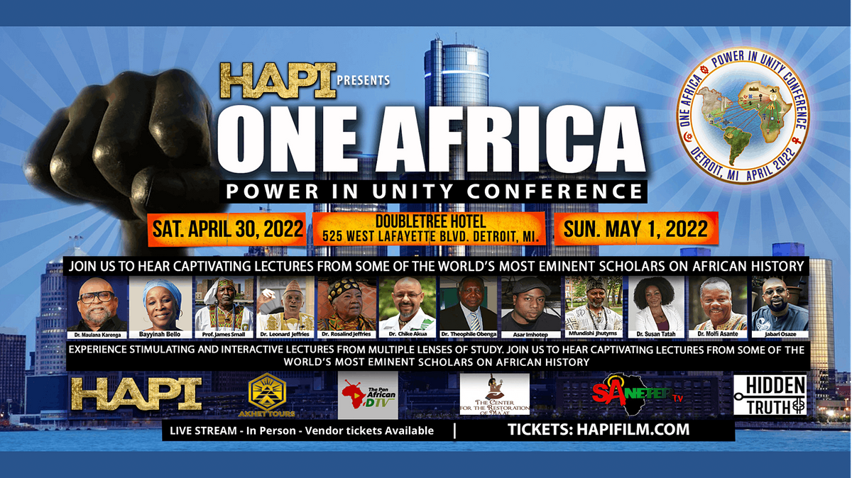 HAPI in association with Akhet Tours is hosting the inaugural One Africa: Power n Unity 2 - Day Conference in Detroit, Mi. You will hear enlightening lectures from renowned scholars such as: