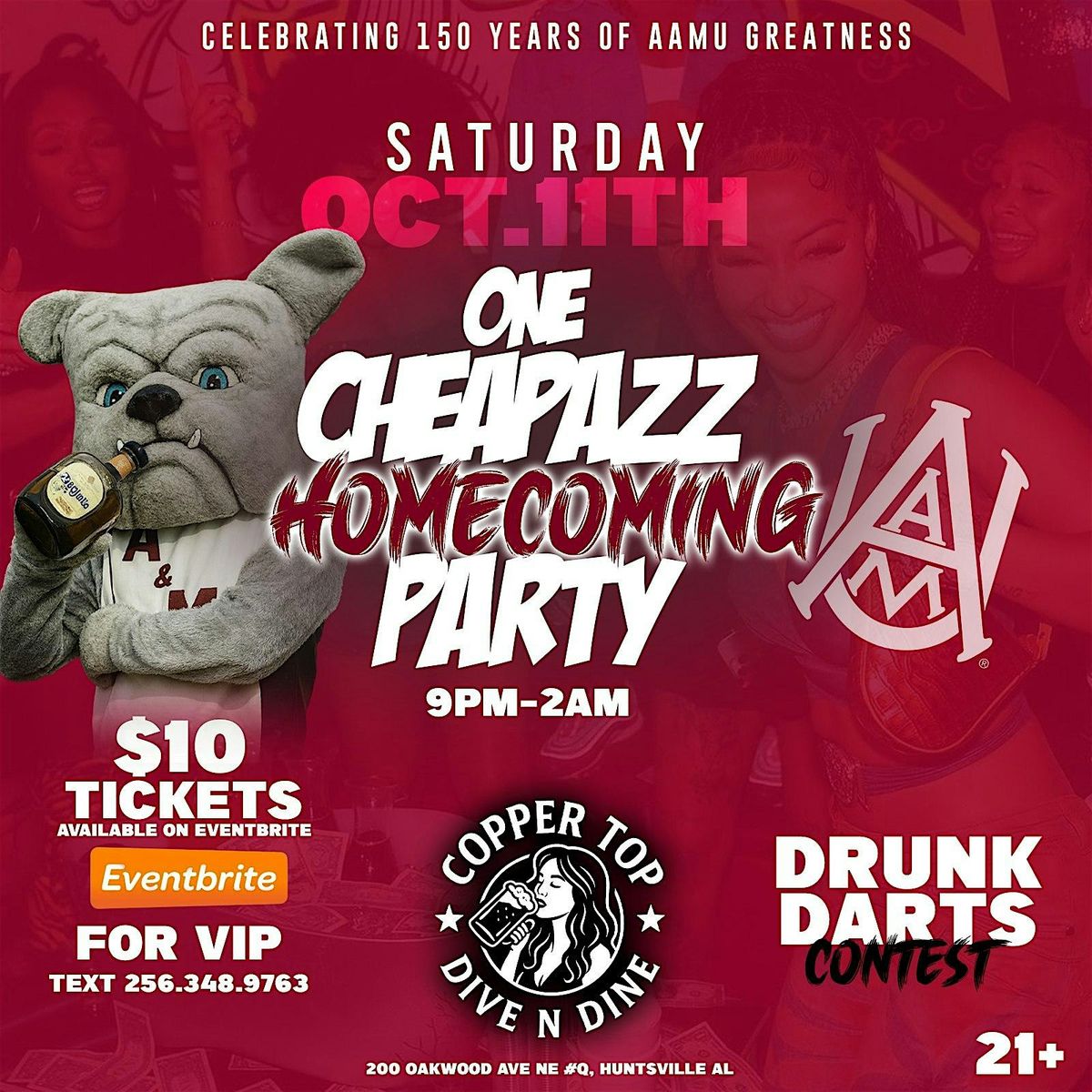 Alabama A&M Homecoming Weekend just got LIT! 🔥 Celebrate 150 Years of AAMU Greatness the right way at the One Cheap Azz Homecoming Party—the party everyone will be talking about!