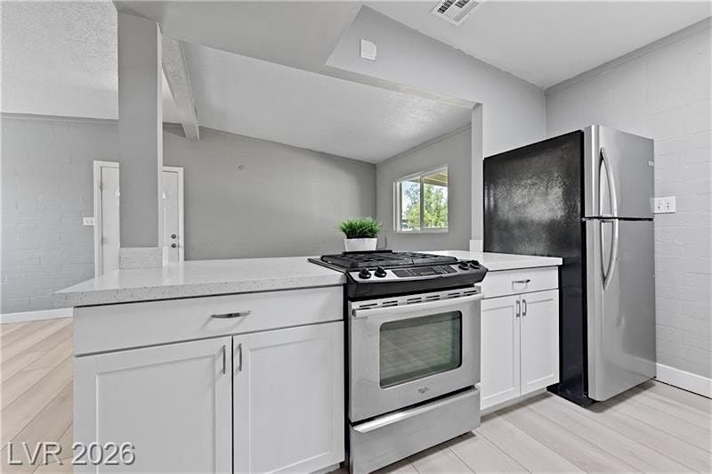 This charming single-family home with NO HOA is sure to impress! The 3 bedroom, 1 bath residence offers numerous renovations and upgrades, including an ADA-accessible Open Floor Plan, Newer Vinyl Flooring and Interior Paint, a Newer Roof, Rear Fence, Swamp Cooler, and Electrical Panel. The Kitchen features Quartz Countertops, White Custom Cabinetry, an Upgraded Sink, and Stainless Steel Appliances. Ceiling fans and Window Units are installed in every room for added comfort. A separate exterior Laundry Room includes a Washer and Dryer, both of which convey with the home. Enjoy low-maintenance desert landscaping and a convenient location just minutes from restaurants, schools, shopping centers, and easy access to the US-95 Highway. This home is a must-see!