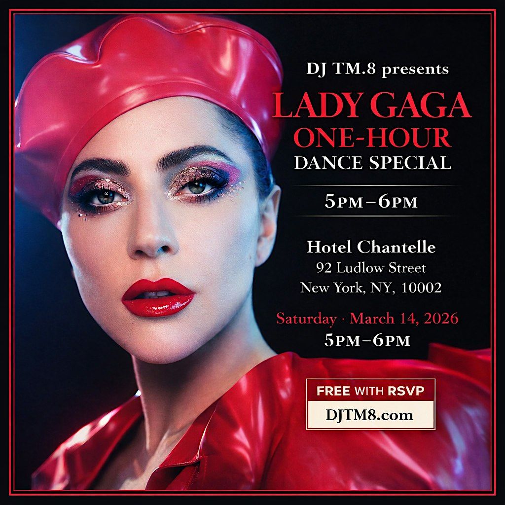 The Legend DJ TM.8 presents a one-hour Lady Gaga dance set for the Opening hour (5 pm to 6 pm) of the Back to the ’80s Saturday Dance Party, 5:00 PM –9:30 PM.