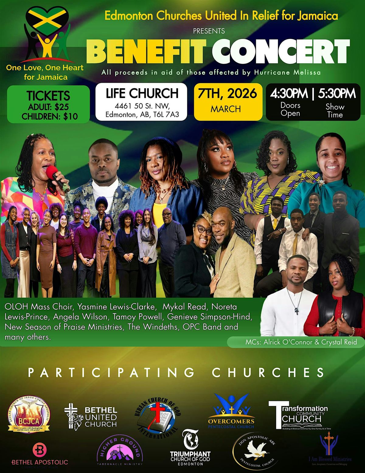 One Love, One Heart Relief Concert is a powerful community benefit concert uniting churches, artists, and worshippers across Edmonton in support of families in Jamaica affected by Hurricane Melissa.