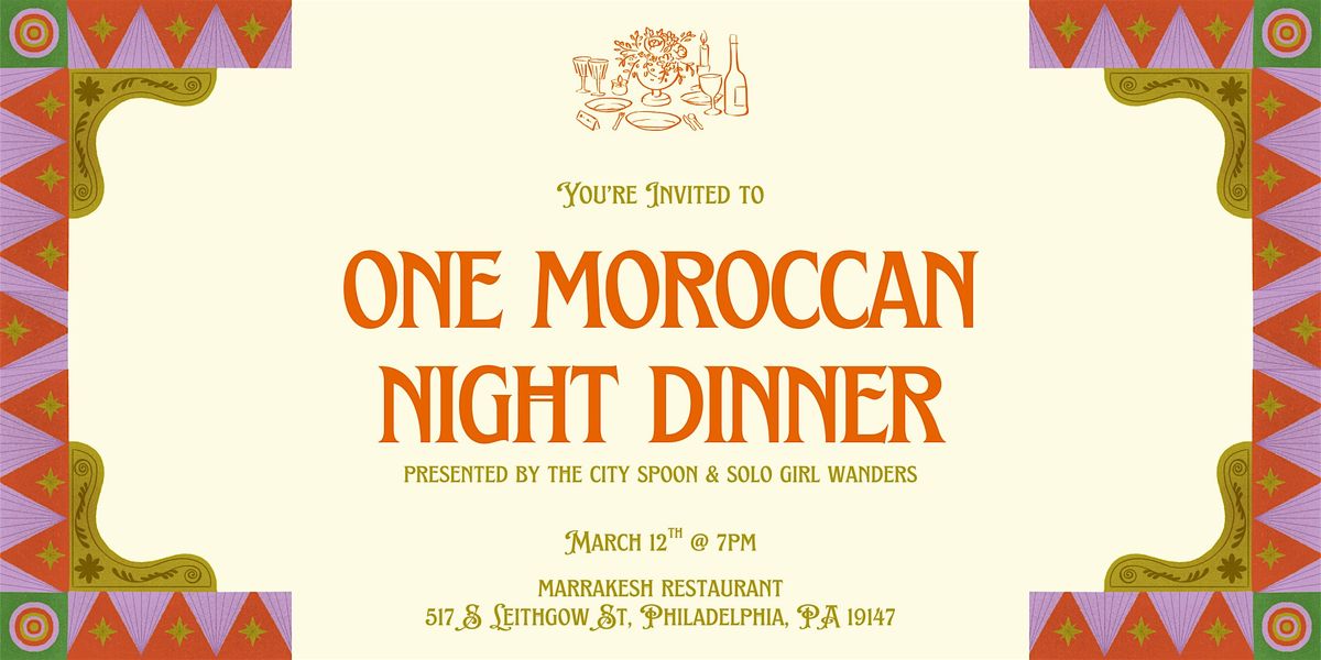 Join us this March for a special edition of The City Spoon Supper Club hosted at Marrakesh in Society Hill, Philadelphia. Together with Solo Girl Wanders, we’re bringing you a 7-course Moroccan dining experience* designed for connection, conversation, and community.