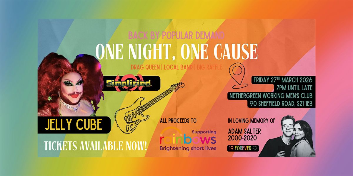 Come join us for a night of fabulous entertainment at Nethergreen Working Men's Club! Get ready for killer entertainment by talented Drag Queen Jelly Cube, and enjoy the amazing tunes of local band, Simplified. It's going to be a night to remember, all in support of Rainbows Hospice and in loving memory of Adam Salter, forever 19.