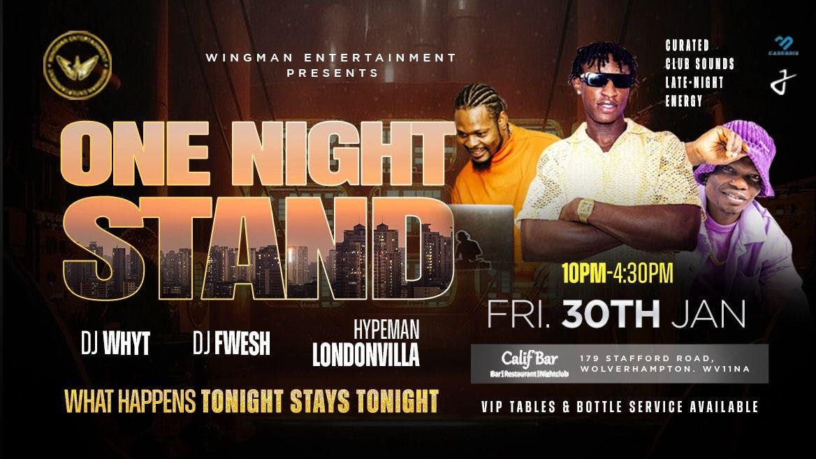 A night designed for the bold, the flirtatious, and the unforgettable.Step into an atmosphere charged with energy, late-night temptation, and nonstop rhythm. One Night Stand is where connections spark, drinks flow, and the dancefloor becomes the only place that matters. Expect smooth blends of R&B, Afrobeats, Hip-Hop, and club anthems, curated to keep you moving until the early hours.