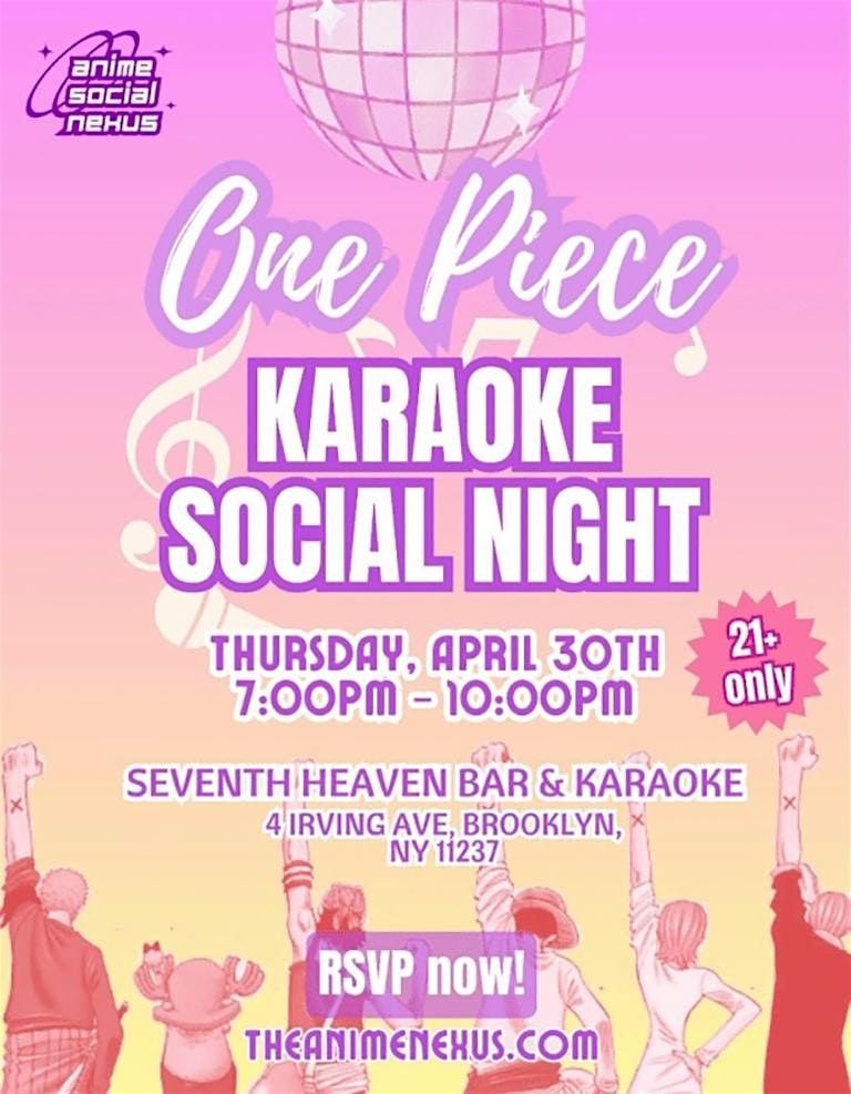 Join Anime Social Nexus at Seventh Heaven Bar & Karaoke on Thursday, April 9th to celebrate One Piece with a night of karaoke and cosplay π€