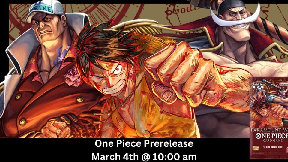 Join us for a One Piece TCG prerelease tournament. Prizes will be provided from the One Piece TCG prerelease kit.