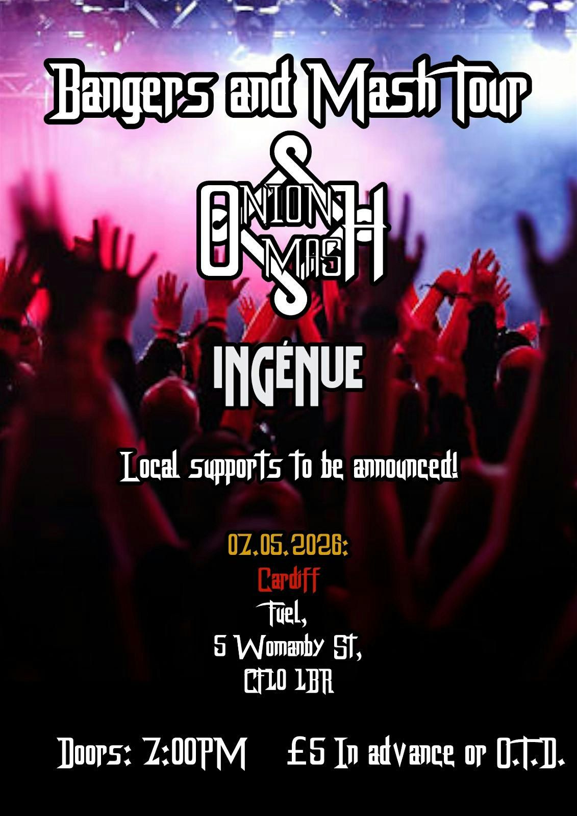 Onion Mash are brining their ‘Bangers and Mash’ tour to Cardiff! Prepare for an amazing night full of electric performances and heavy riffs from both Onion Mash and Ingenue. Don’t miss the bands first time in the Welsh Capital! Local supports to be announced! Big love to Fuel, Cardiff for helping to put this on!