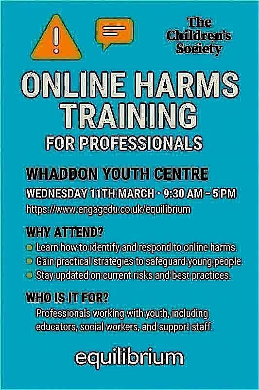 Join us for an In-person professional training session exploring Online Harms as part of The Equilibrium Project. This Session will Support professionals to better understand online risks affecting children & Young people, share real-world insights. An oppourtunity to learn, reflect and connect with other professionals working in online safety and safeguarding.