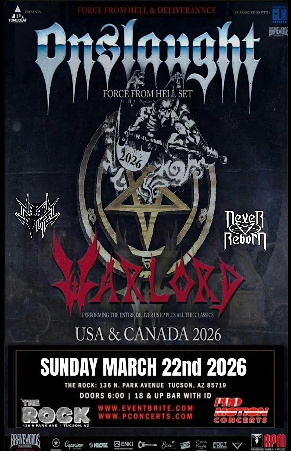 UK thrash legends ONSLAUGHT are back for their first North American headline tour in over 10 years! Joined by US metal cult icons WARLORD.