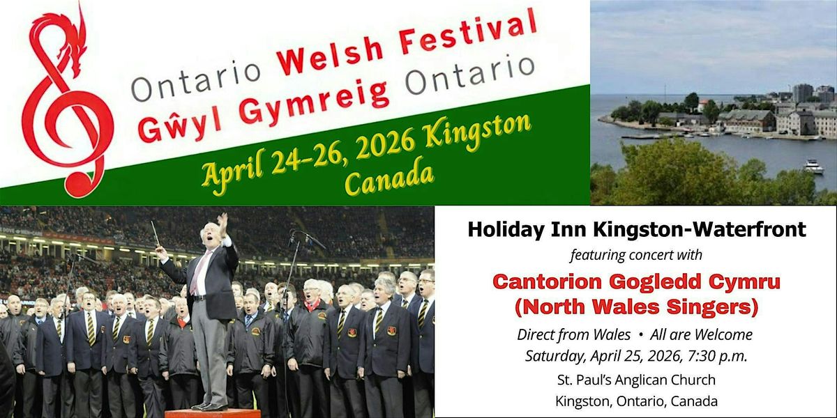 We invite you to join our celebration of all things Welsh on the weekend of April 24-26, 2026 at The Holiday Inn Waterfront hotel in Kingston, Ontario.