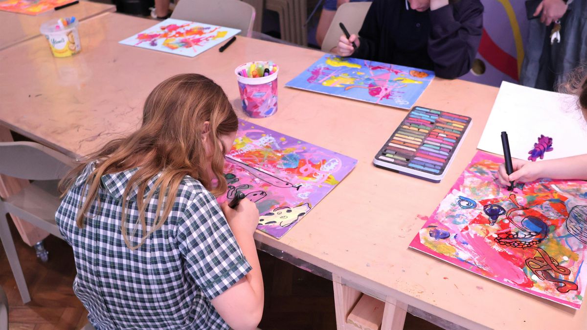 See the beauty in every splatter and squiggle, and turn your abstract marks into a vibrant cartoon drawing. Learn creative thinking and problem solving skills and giggle along the way.