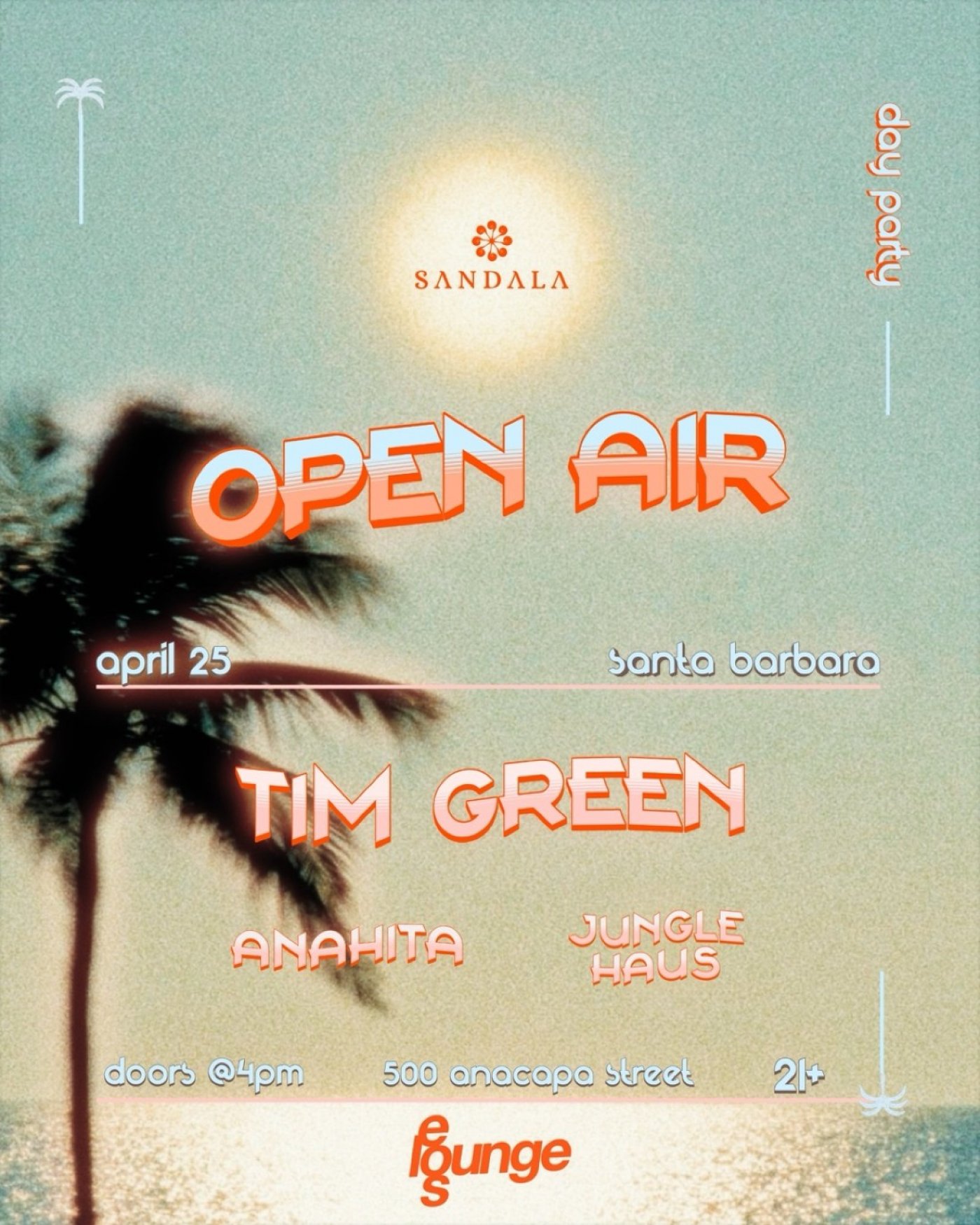Join us for OPEN AIR. We're excited to welcome Tim Green [All Day I Dream, Anjunadeep] for a day party Santa Barbara style.