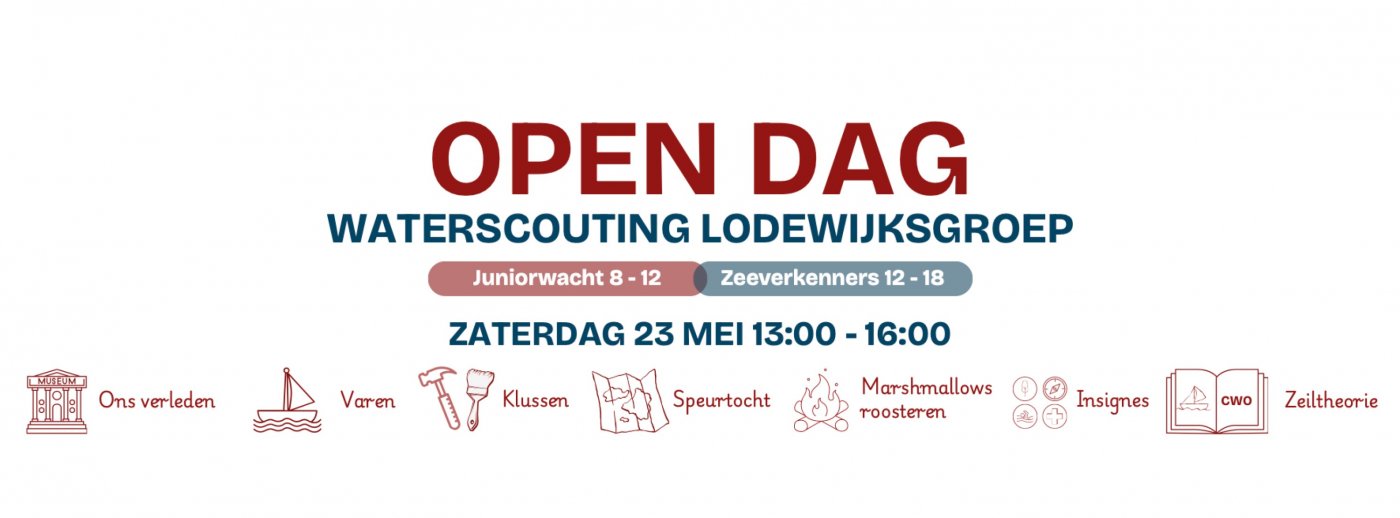 Op zaterdag 23 mei van 13:00 tot 16:00 uur opent Waterscouting De Lodewijksgroep haar deuren voor een leuke open dag. We zijn opgericht in 1934 en zijn trots om de oudste scoutinggroep van Leiden te zijn!