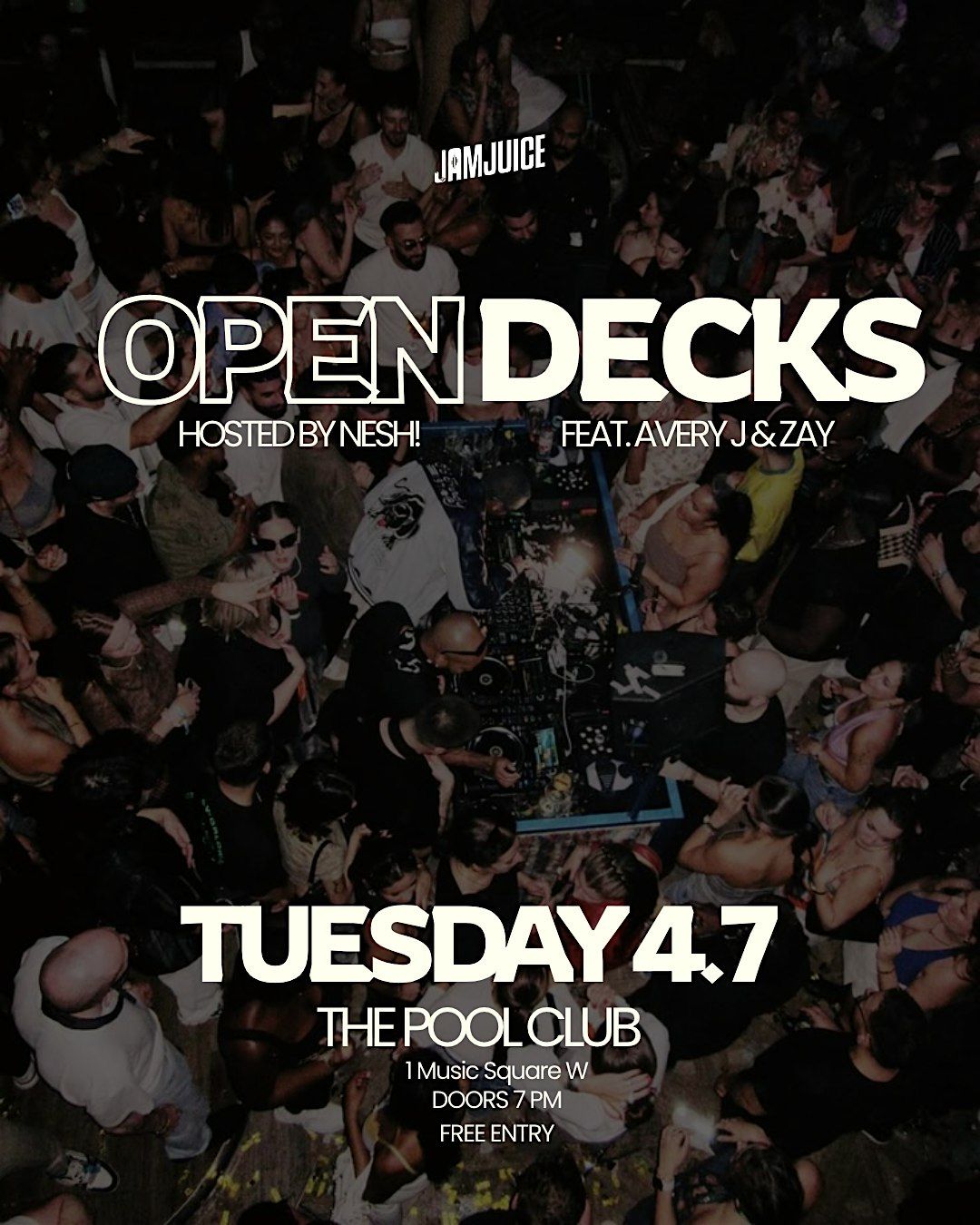 Step up to the decks at Open Decks Jam! 30-minute DJ sets, sign up on arrival, and be part of the energy at The Pool Club | Virgin Hotel