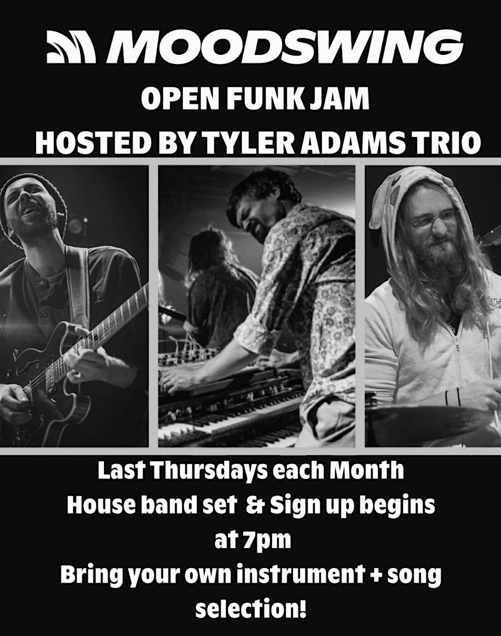 Get ready for an in-person groove session! Join us for the Open Funk Jam featuring the amazing Tyler Adams Organ Trio. Whether you're here to play, listen, or just feel the funk, it's the perfect vibe to unwind and jam out. Bring your energy and let's make some music together! Musician sign up starts at 7, bring your instrument!