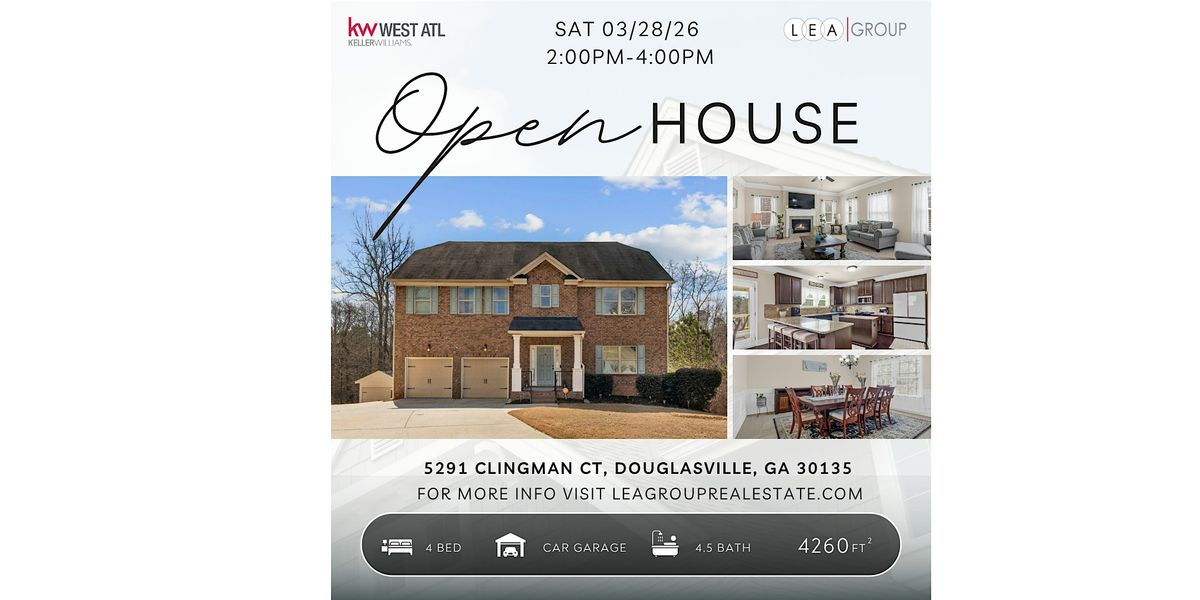 Come check out this awesome spot at 5291 Clingman Ct, Douglasville, GA! Join us on March 28, 2026 at 2:00 PM to explore the place, ask questions, and get a feel for your next home. It’s a chill, in-person event—perfect for anyone curious about the neighborhood or just looking around. Hope to see you there!