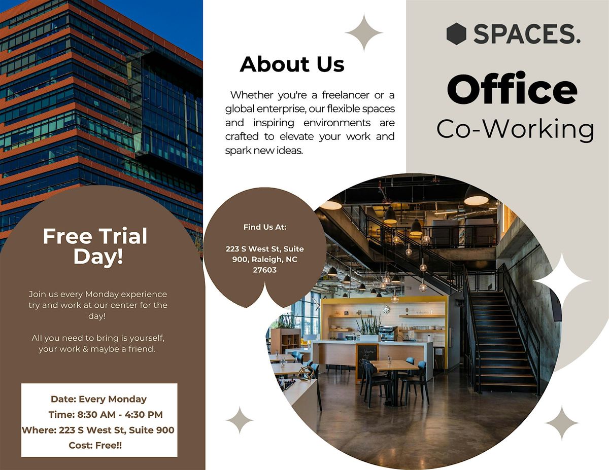 Join us for a Free Day of Co-Working! Get fast Wi-Fi & free coffee while you try out a new way to work. All you need to bring is you, your work, & maybe a friend!