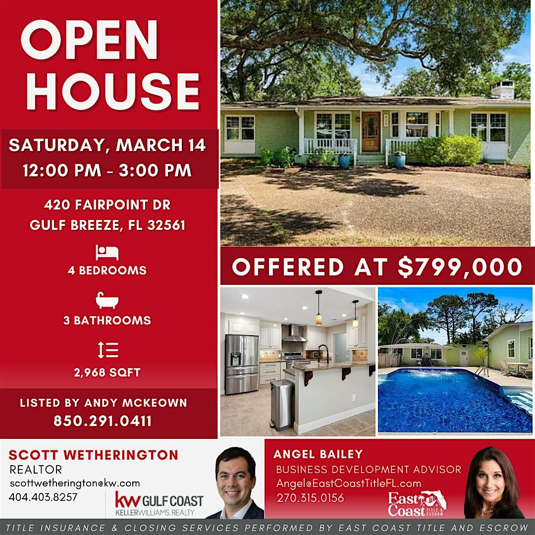#GulfBreezeFL #OpenHouse #GulfBreezeRealEstate #PensacolaRealEstate #FloridaHomesForSale #EmeraldCoastLiving #EastCoastTitle #LuxuryHome