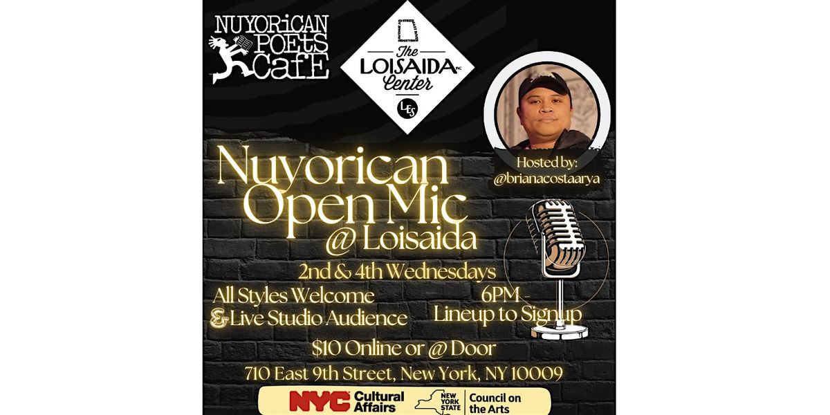Join the Nuyorican Poets Cafe for our off-site edition of the OPEN MIC hosted by Brian Acosta Arya during our 3-year #Nuyoricanstruction of our building - at the nearby Loisaida Center in the Lower East Side ("Loisaida") in Manhattan, New York City!