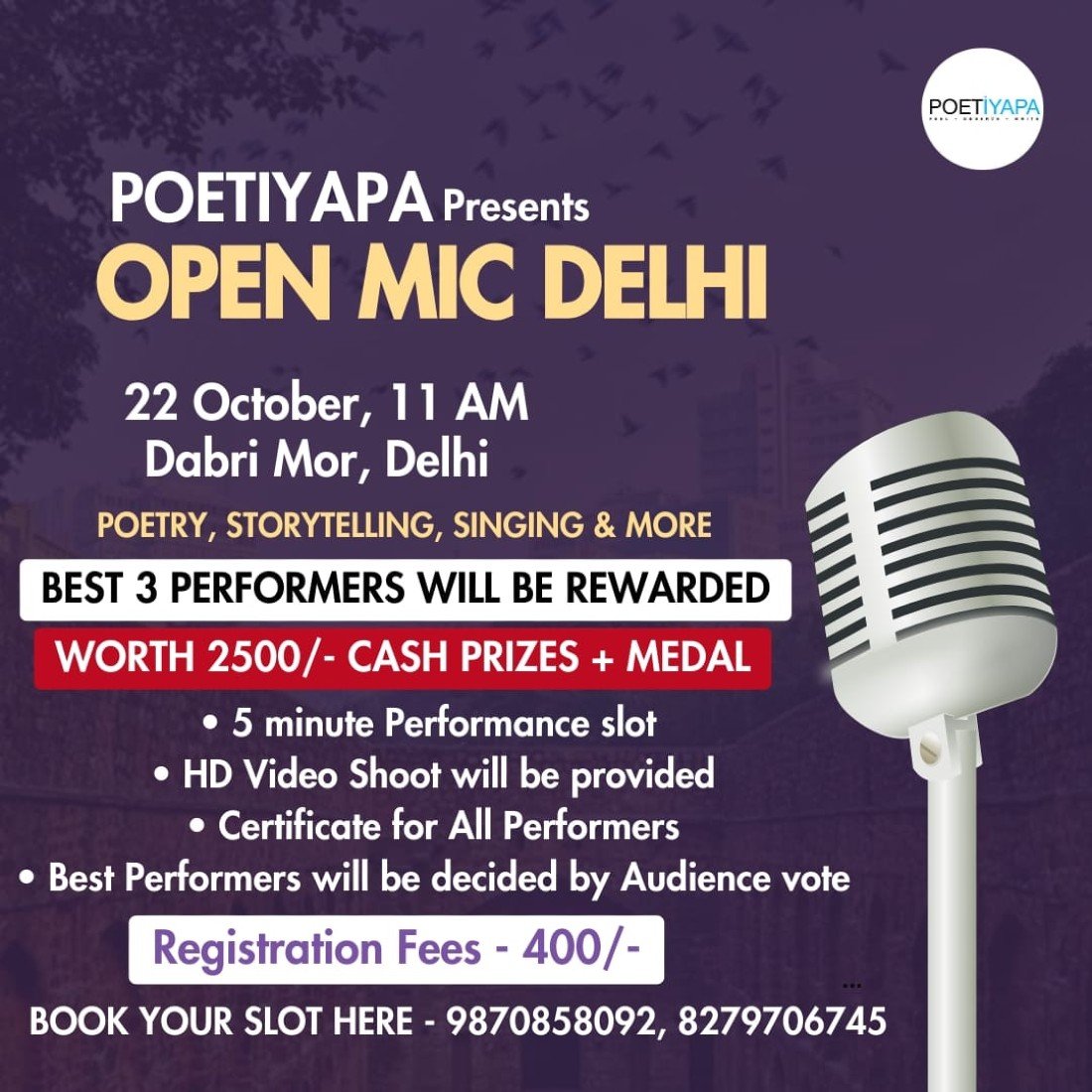 DELHI OPEN MIC DETAILS #poetiyapa