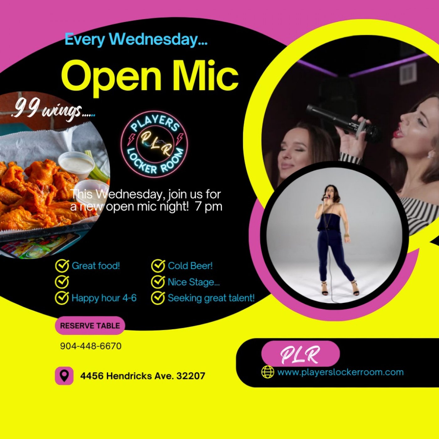 ποΈ Tickets are available on AllEvents, so secure your spot today and get ready to be part of an unforgettable night filled with raw talent, positive vibes, and .99 wings special offer! Don't miss out on this fantastic opportunity to experience the magic of Open Mic Night at Players Locker Room.