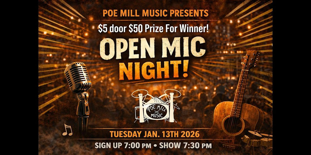Join us for an electric night of live creativity at Poe Mill Music! Open Mic Night welcomes all talents—musicians, singers, poets, comedians, and performers of every kind—to take the stage and share their art.