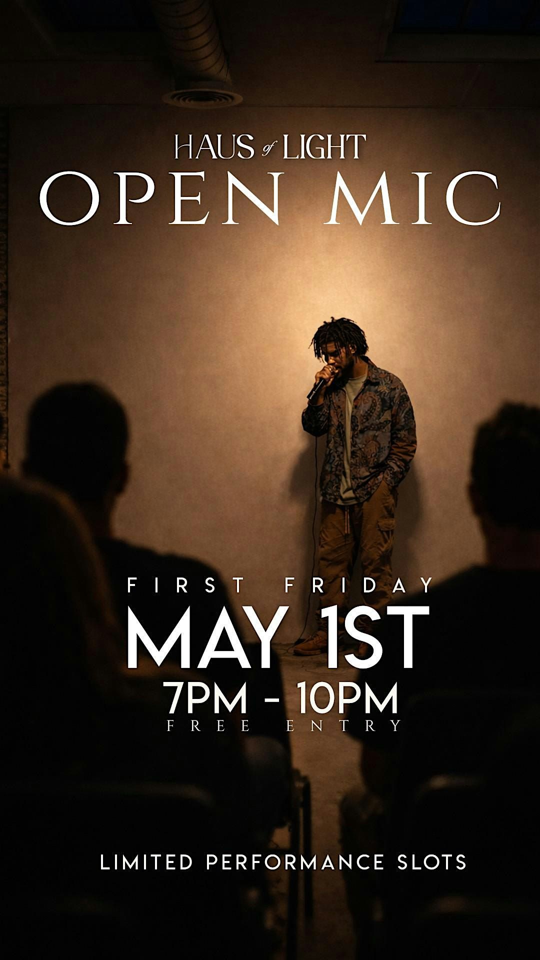 Join us for an intimate, high-vibe Open Mic Night at Haus of Light, where creativity, expression, and community come together. Step into a warm, curated space as artists take the floor, sharing their unique voices through music, poetry, and live performance. The night flows seamlessly from one set to the next, building energy, connection, and unforgettable moments throughout. Whether you're performing or simply soaking it all in, this is a space where creativity isn’t just showcased—it’s felt.