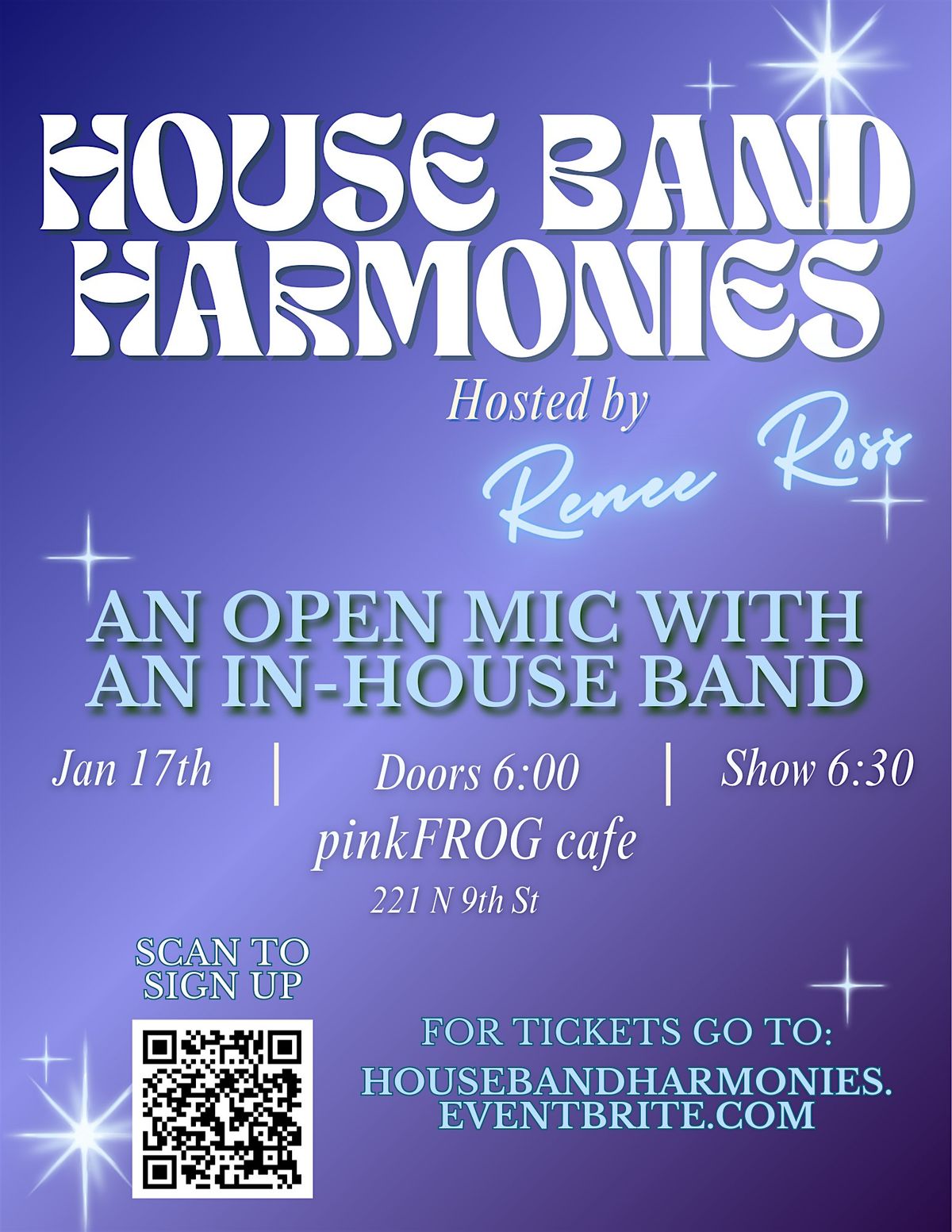 Join us for House Band Harmonies on Jan. 17th, 2026 at 6:30 PM for a night of music and fun. Whether you're a seasoned performer or trying it out for the first time, this is the perfect opportunity to showcase your talent, backed by our in-house band.