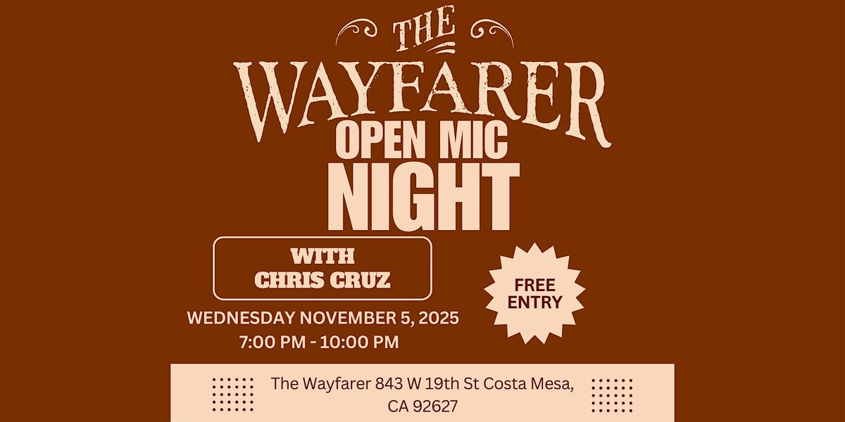 Open Mic Night with Chris Cruz on Wednesday, November 5 at The Wayfarer in Costa Mesa, CA!